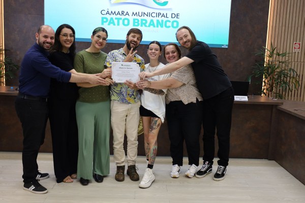 De autoria do vereador Rodrigo Correia (União Brasil), foi entregue a Moção de Aplauso nº 31, de 2025, ao artista visual Rodrigo Piasecki, em reconhecimento às diversas obras de arte realizadas nos muros do município de Pato Branco, que contribuem para a valorização cultural, estética e artística da cidade.