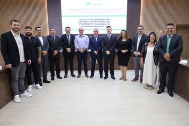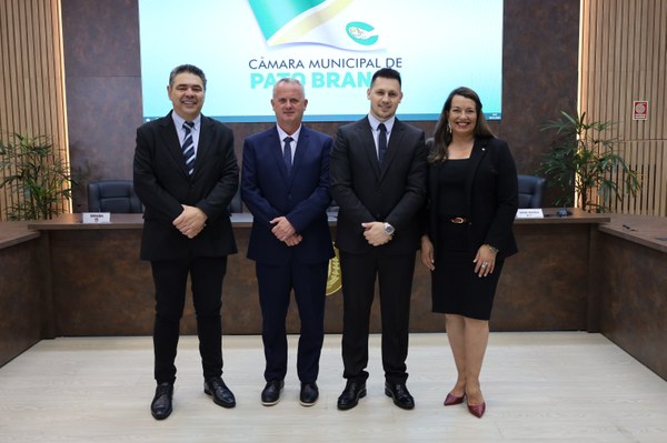 Realizada nesta segunda-feira (5), a Posse da Mesa Diretora da Câmara Municipal de Pato Branco, para 2026. Os trabalhos deste ano serão conduzidos pelo presidente, Joecir Bernardi (PSD); pelo vice-presidente, Diogo Grando (PRD); pelo primeiro-secretário, Claudemir Zanco (PL); e pela segunda-secretária, Anne Gomes (PSD). A cerimônia, realizada no Plenário da Casa, contou com a presença de diversas autoridades, familiares, amigos, imprensa e a comunidade pato-branquense.