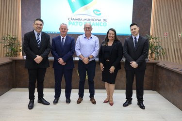 Em seu pronunciamento, o presidente empossado, Joecir Bernardi - que é o primeiro vereador a assumir pela terceira vez a presidência da Casa (2018, 2021 e 2025) - assumiu o compromisso de conduzir a Câmara com igualdade, diálogo e responsabilidade, dando continuidade ao bom trabalho já realizado. “Agradeço à minha família, aos servidores da Casa, aos cidadãos, à imprensa e a Deus pelo apoio constante. Assumo este novo ano legislativo ciente dos desafios e da responsabilidade de liderar a Casa do Povo. Reafirmo o compromisso de tratamento igualitário aos 11 vereadores, acima de questões partidárias. Daremos continuidade ao bom trabalho da mesa anterior, com ajustes necessários na estrutura interna. Entre as prioridades iniciais estão a revisão do Conselho de Ética e melhorias na organização da Casa. Defenderei pautas importantes para a cidade, como soluções urgentes para a falta de energia elétrica. Também buscaremos um debate positivo sobre orçamento, desenvolvimento econômico e parques industriais. O foco será sempre o interesse do cidadão e o fortalecimento de Pato Branco. Conto com a colaboração de todos para um ano de muito trabalho, diálogo e avanços”, concluiu Bernardi.