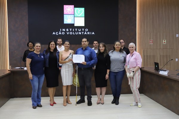 De autoria do vereador Rafael Celestrin (PSD), foi entregue a Moção de Aplauso nº 5, de 2024, ao Instituto Ação Voluntária – IAV de Pato Branco, pelo trabalho que desenvolve através de acolhimento, suporte e inclusão das famílias de Pessoas com Deficiência.